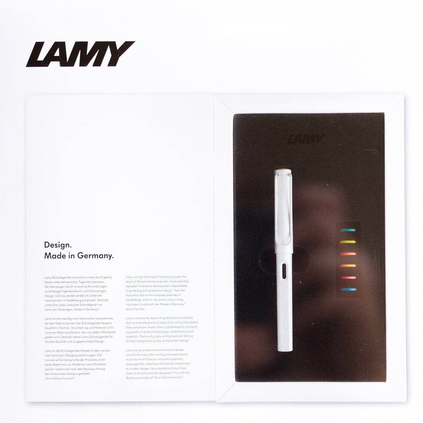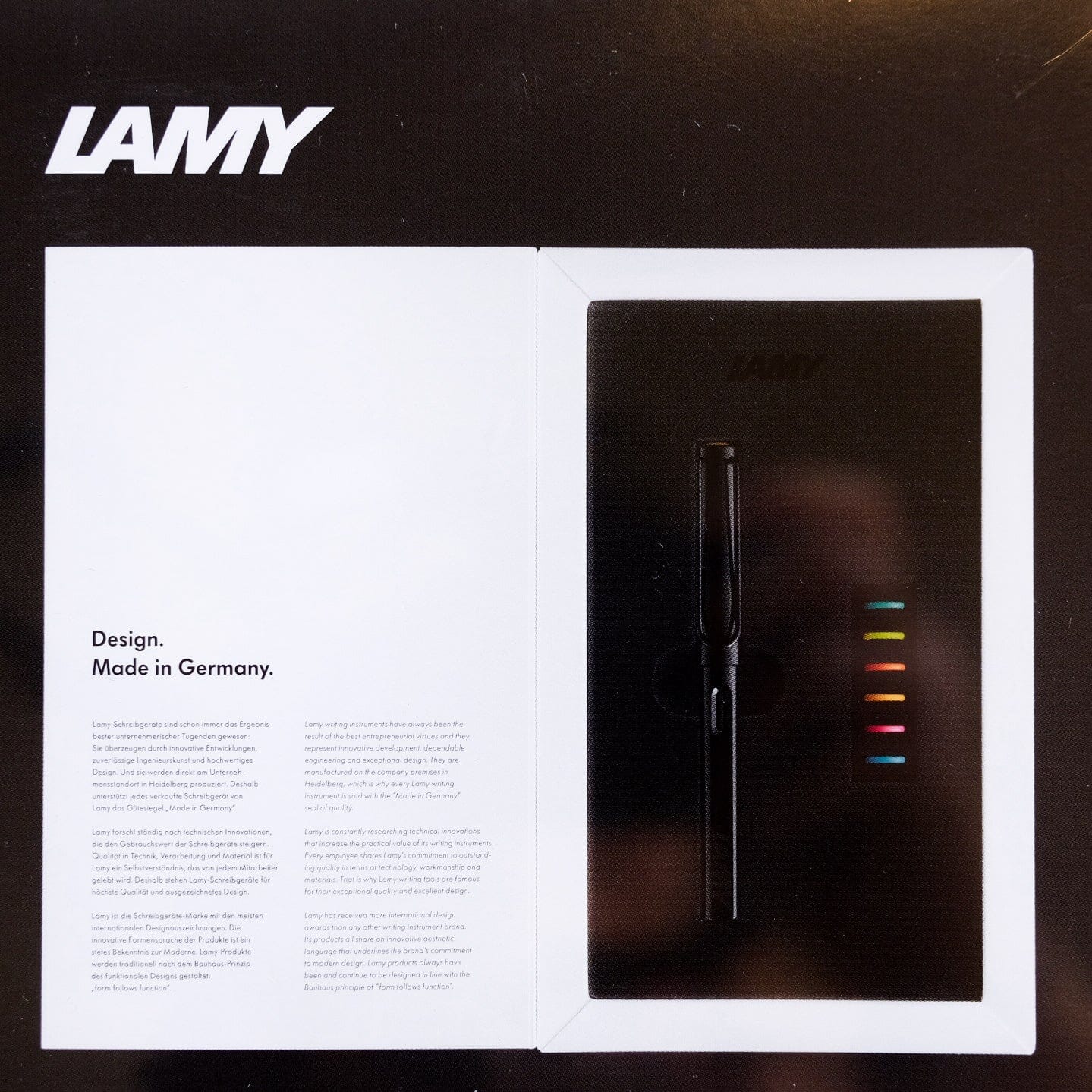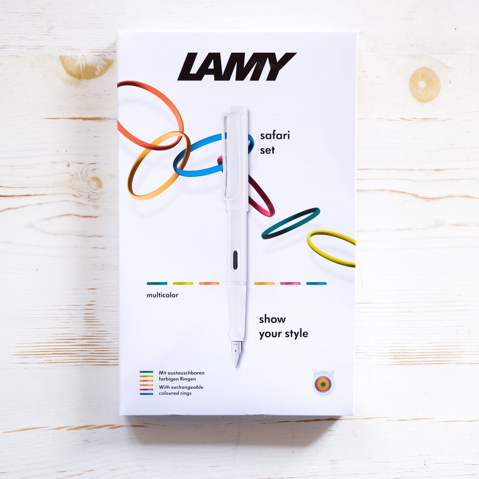 In these sets, the world’s most successful, timeless classics with perfect ergonomics are accompanied by six decorative rings that correspond to the special colors of the LAMY safari series. The rings are easy to switch out and lend both fountain pens a unique touch. The colorful statement is rounded out by the cap tops, which feature all of the ring colors. Each with a blue LAMY T 10 cartridge and a stainless steel nib.