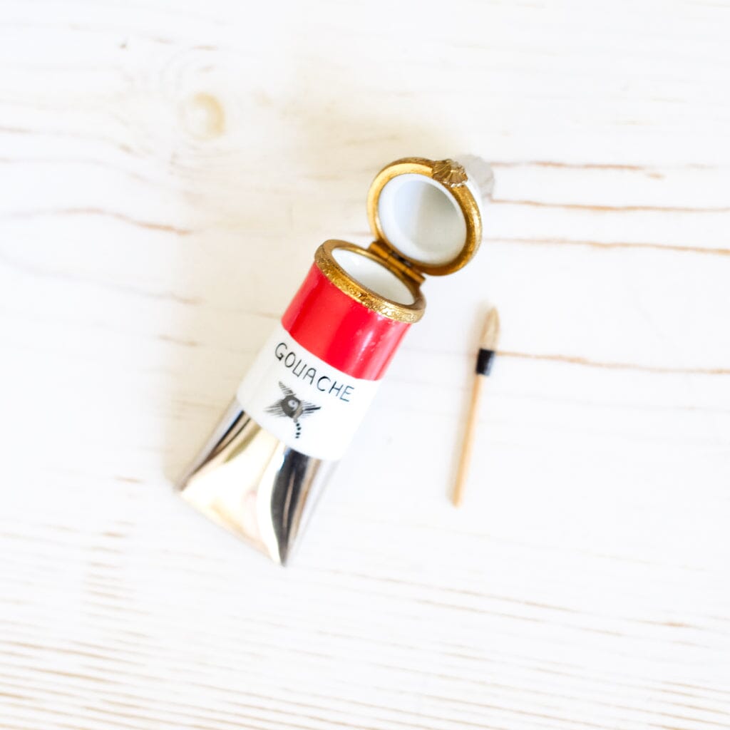 Limoges Peint Main Trinket Box, made in France. Includes tiny wooden paintbrush inside the box.