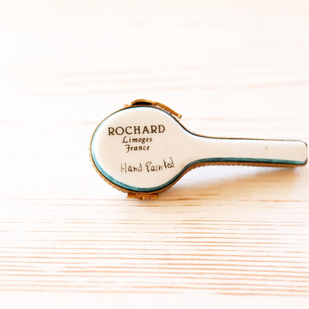Limoges tennis racket, made of porcelain and hand-painted.