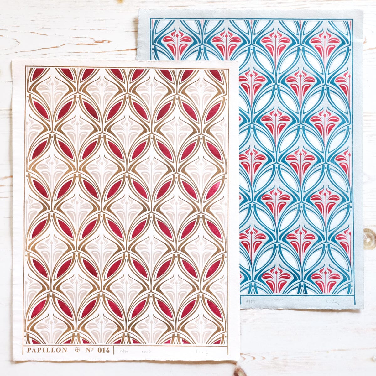 These are printed on 100% cotton paper from Khadi Papers in India, handmade from recycled garment industry offcuts. Read more about our materials.