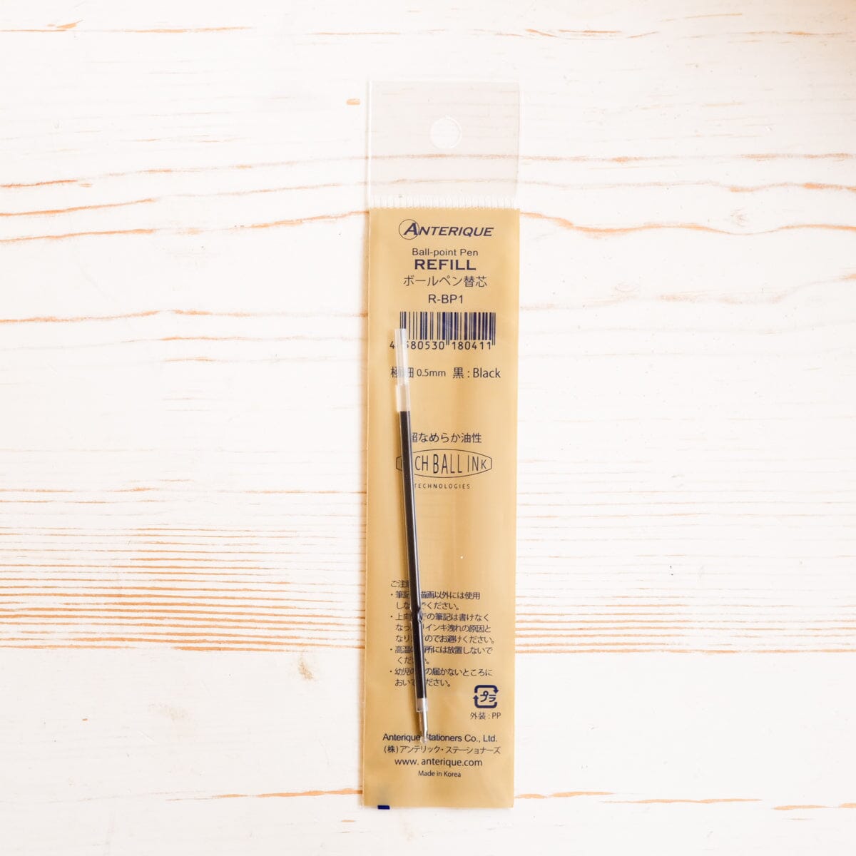 Ballpoint pens in the past used "sticky" ink, but Anterique's oil-based ballpoint pens use "ultra-low-viscosity ink" (Mach ball ink). Ultra-low-viscosity is ink that is "smooth" and easy-flowing like salad oil. When using "smooth" ink, an ordinary pen tip will have ink leakage, so it must be combined with an ultra-precisely processed pen tip. Anterique ballpoint pens use a pen tip with a built-in spring to precisely control the flow of ink for a very crisp, non-smudging, ultra-fine .5mm line. This is the secret to smooth writing!